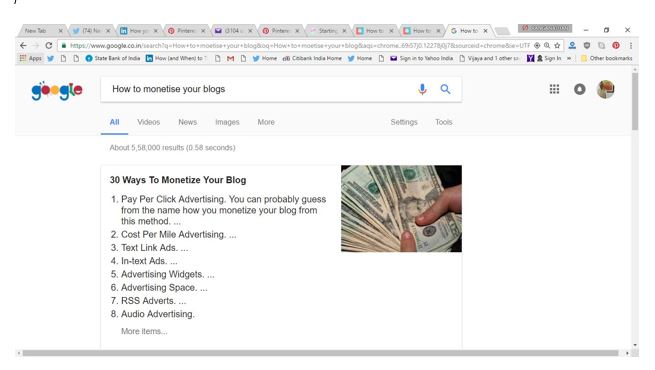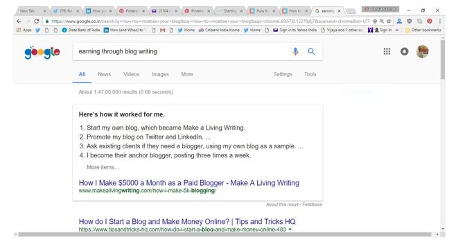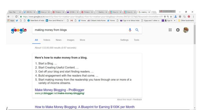 ü Earning through blog writing and making money from blogs has close to 15 million results.
